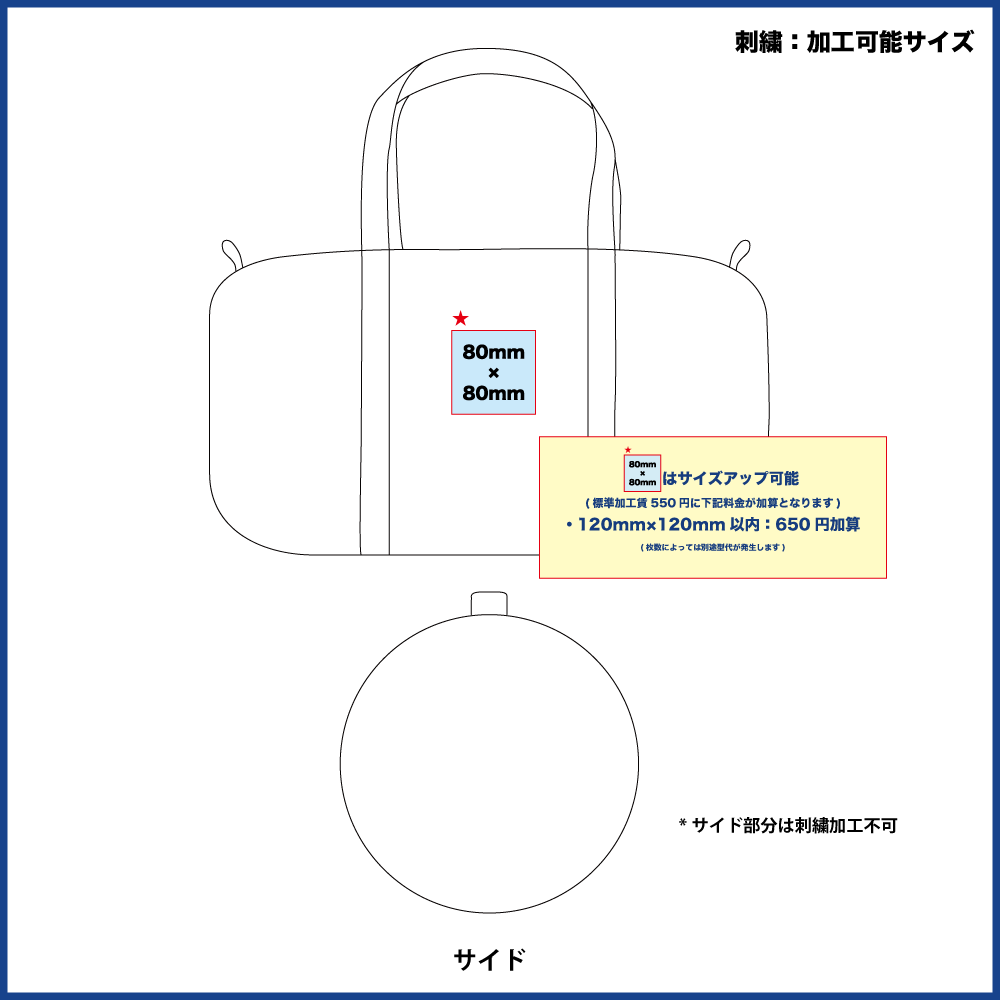 *生地の特質上、1箇所1色までとなります。(多色加工不可)