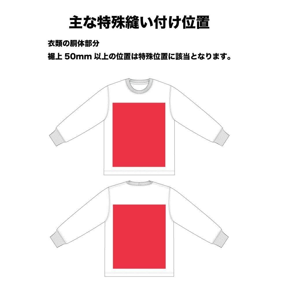 ・特殊縫い付け位置は通常よりも時間がかかるため、1枚あたり250円での縫い付けになります。