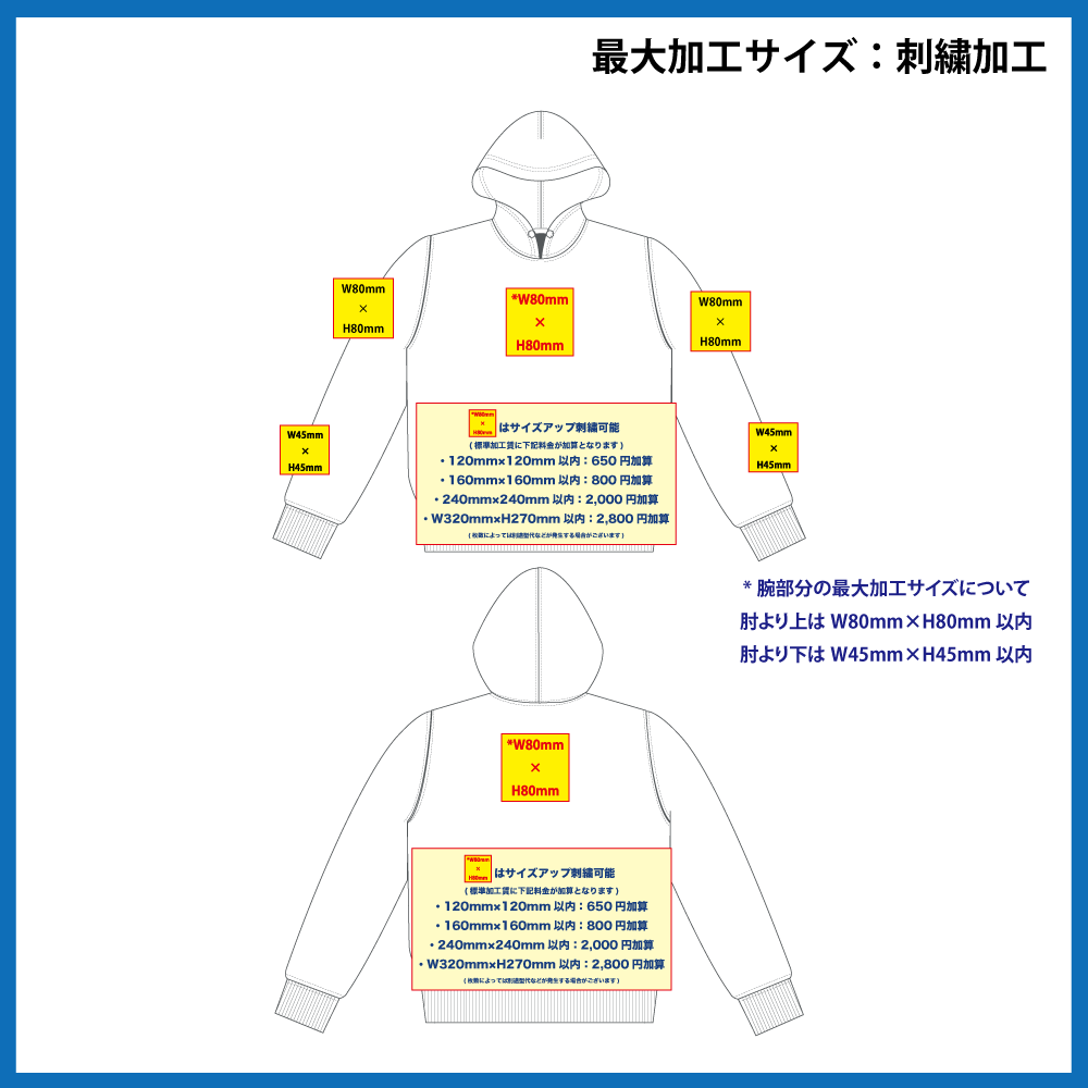 「刺繍加工について」 をご参照ください。