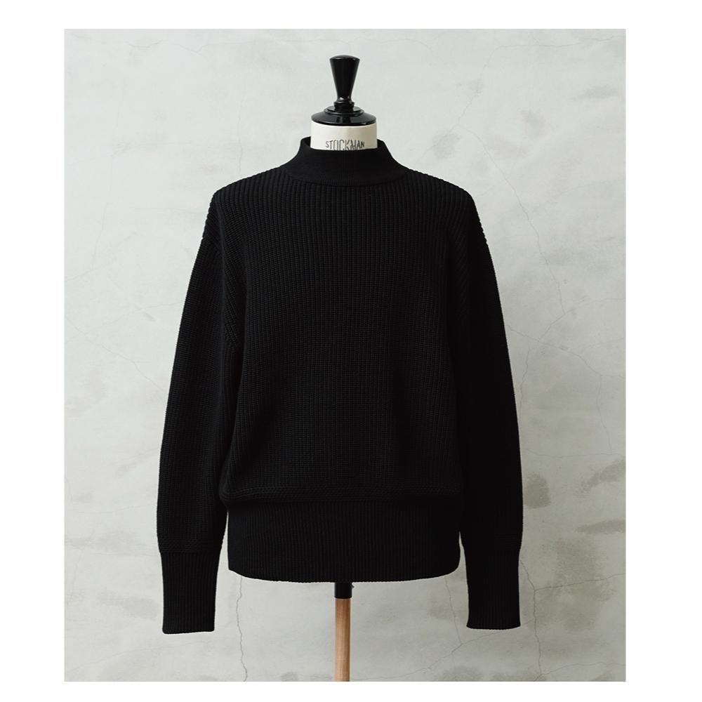 フィット感の良さと上品な印象を併せ持つモックネックセーターは、落ち着いた大人のコーディネートにも重宝します。