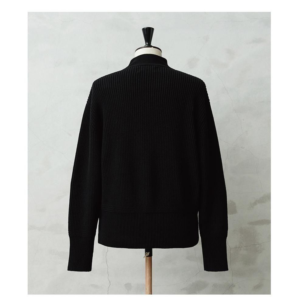 後年のモデルと比べてローゲージで編まれており、リブ付け根部分の編地の方向が切り替えられるなど、細部のディテールにこだわった仕様が特徴です。